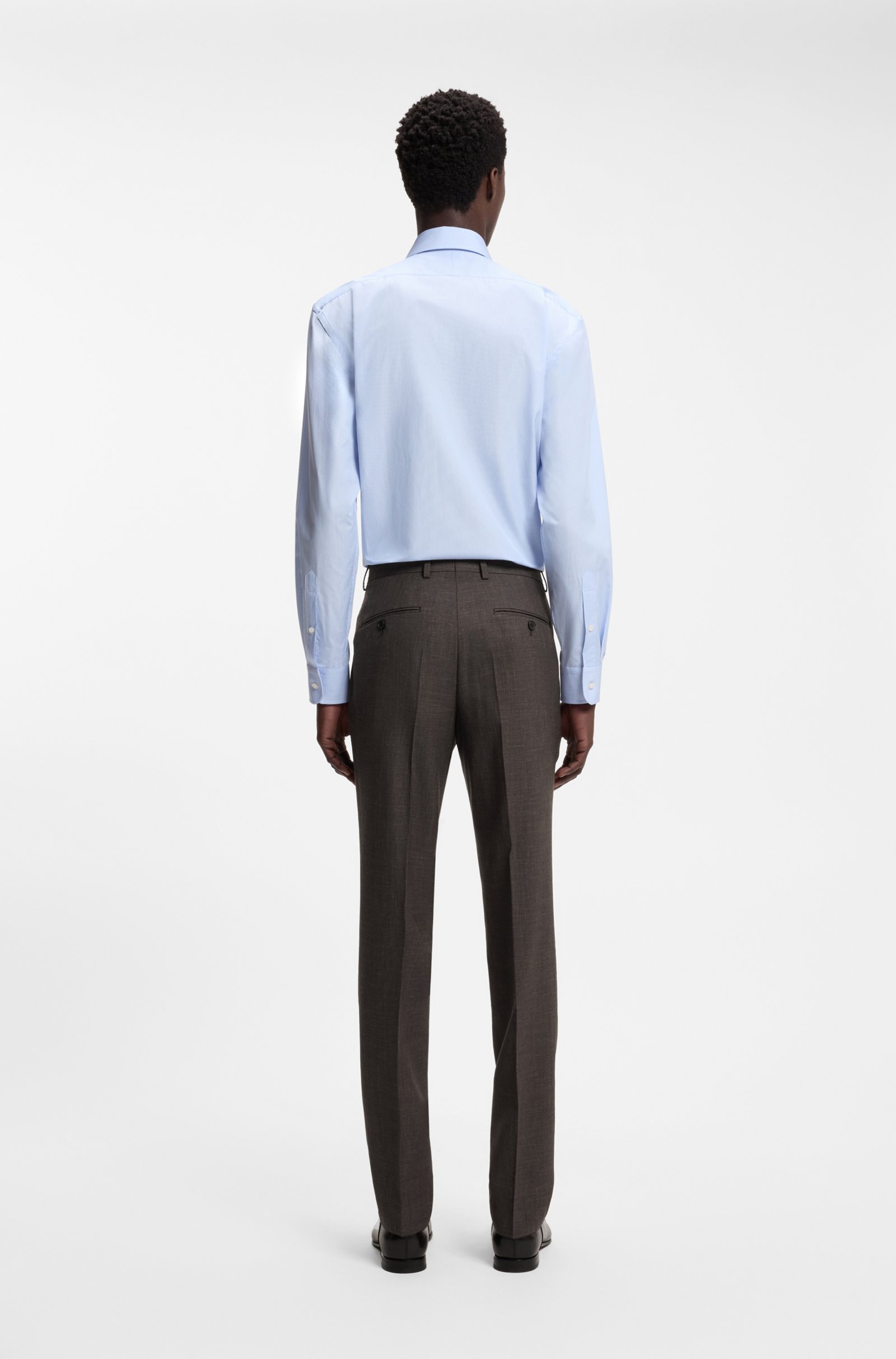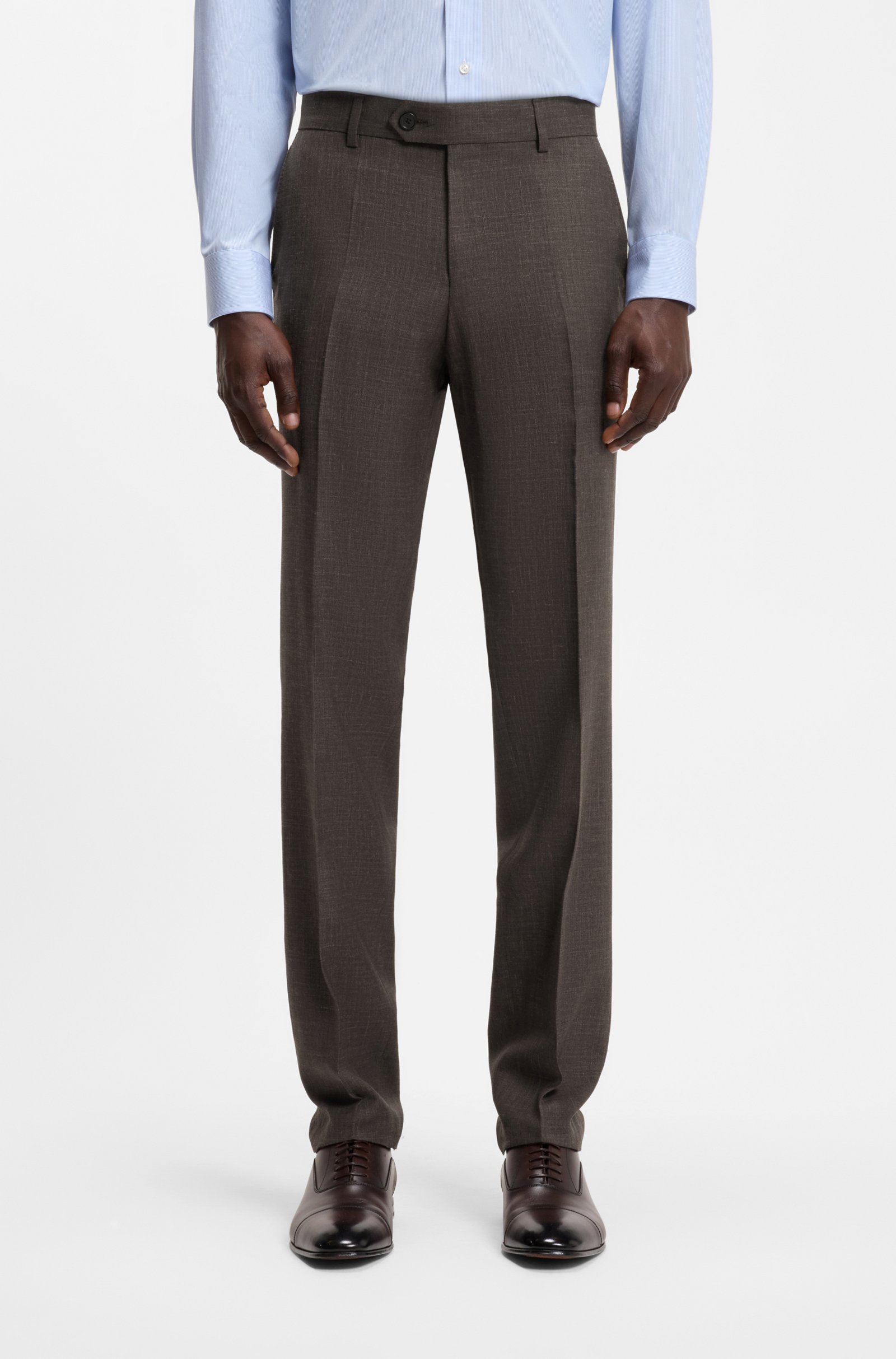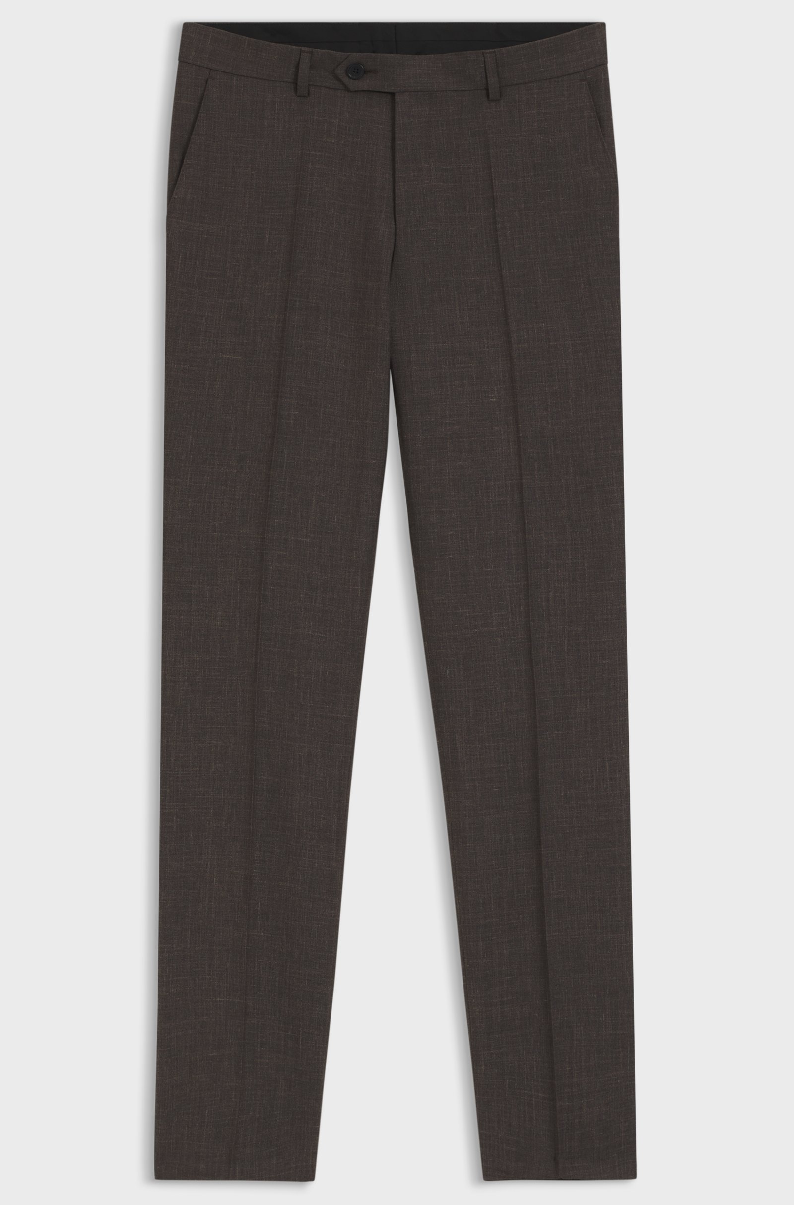 BOSS BY BECKHAM pantalon voor heren. Vakkundig vervaardigd van wol, zijde en linnen. BOSS BY BECKHAM is een verhaal van klassiekers in een nieuw jasje, geïnspireerd door David Beckhams kenmerkende stijl.