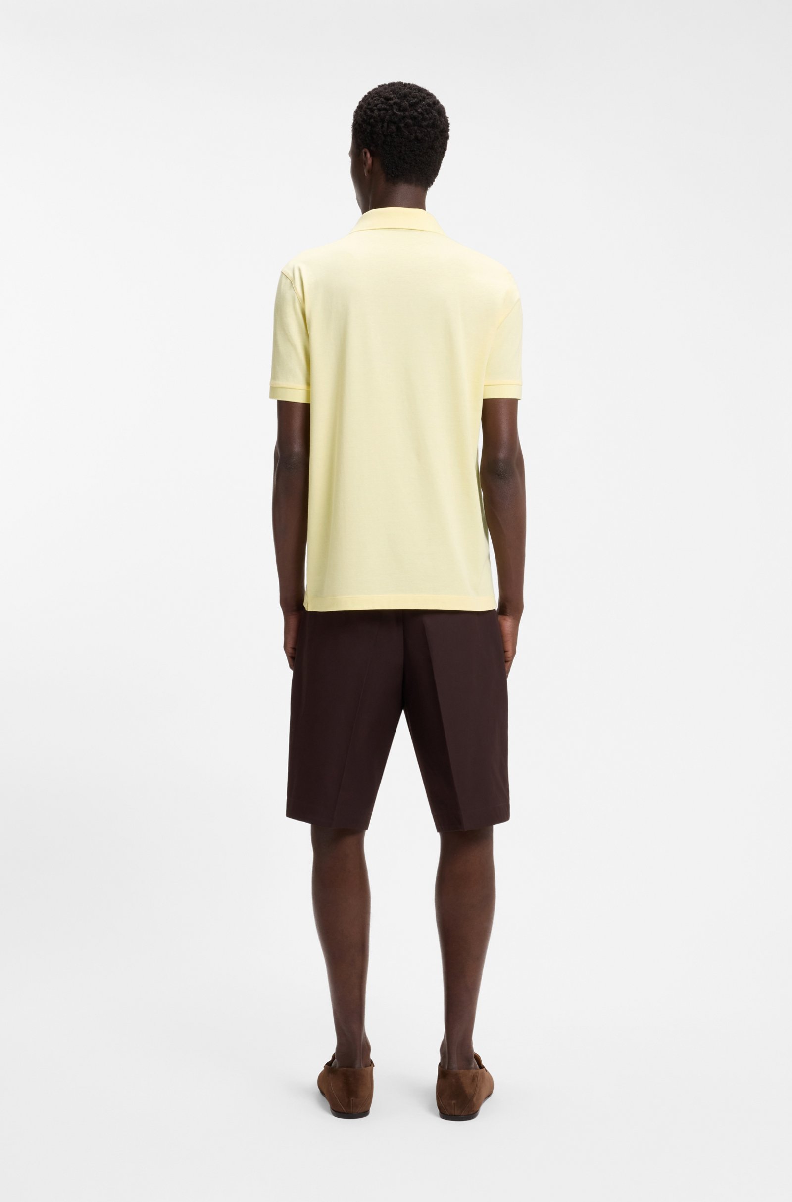 BOSS BY BECKHAM polo gemaakt van een luxueuze mix van katoen en zijde en heeft een moderne Johnny-kraag. Casual, recht model. BOSS BY BECKHAM is een verhaal van klassiekers in een nieuw jasje, geïnspireerd door David Beckhams kenmerkende stijl.