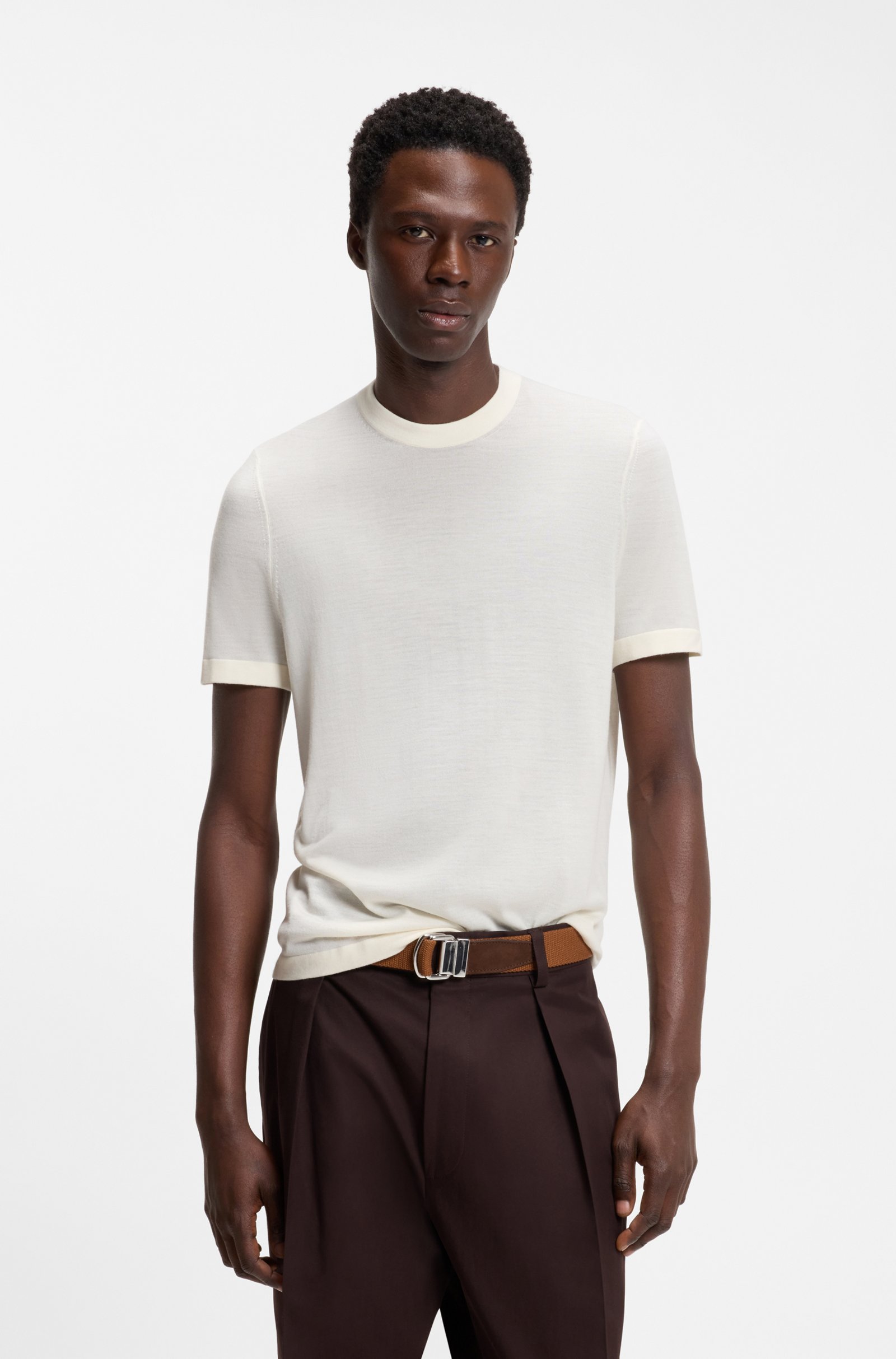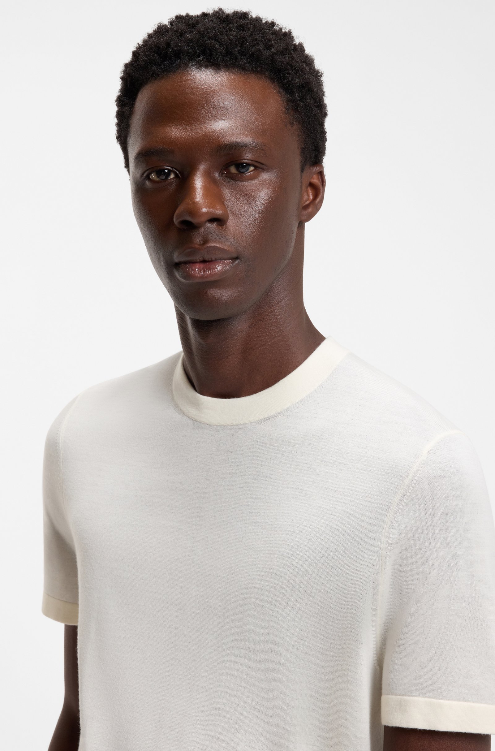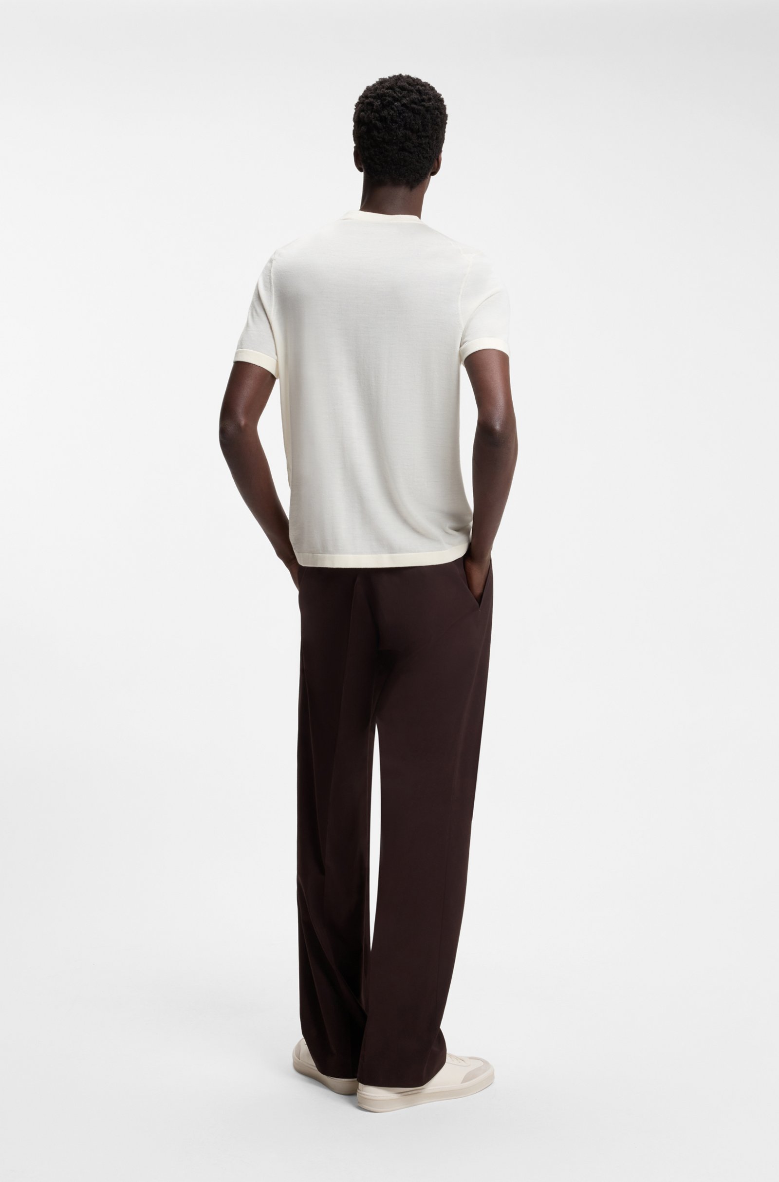 Herentrui van BOSS BY BECKHAM gebreid van natuurlijk ademende scheerwol met korte mouwen. Regular-fit model. BOSS BY BECKHAM is een verhaal van klassiekers in een nieuw jasje, geïnspireerd door David Beckhams kenmerkende stijl.