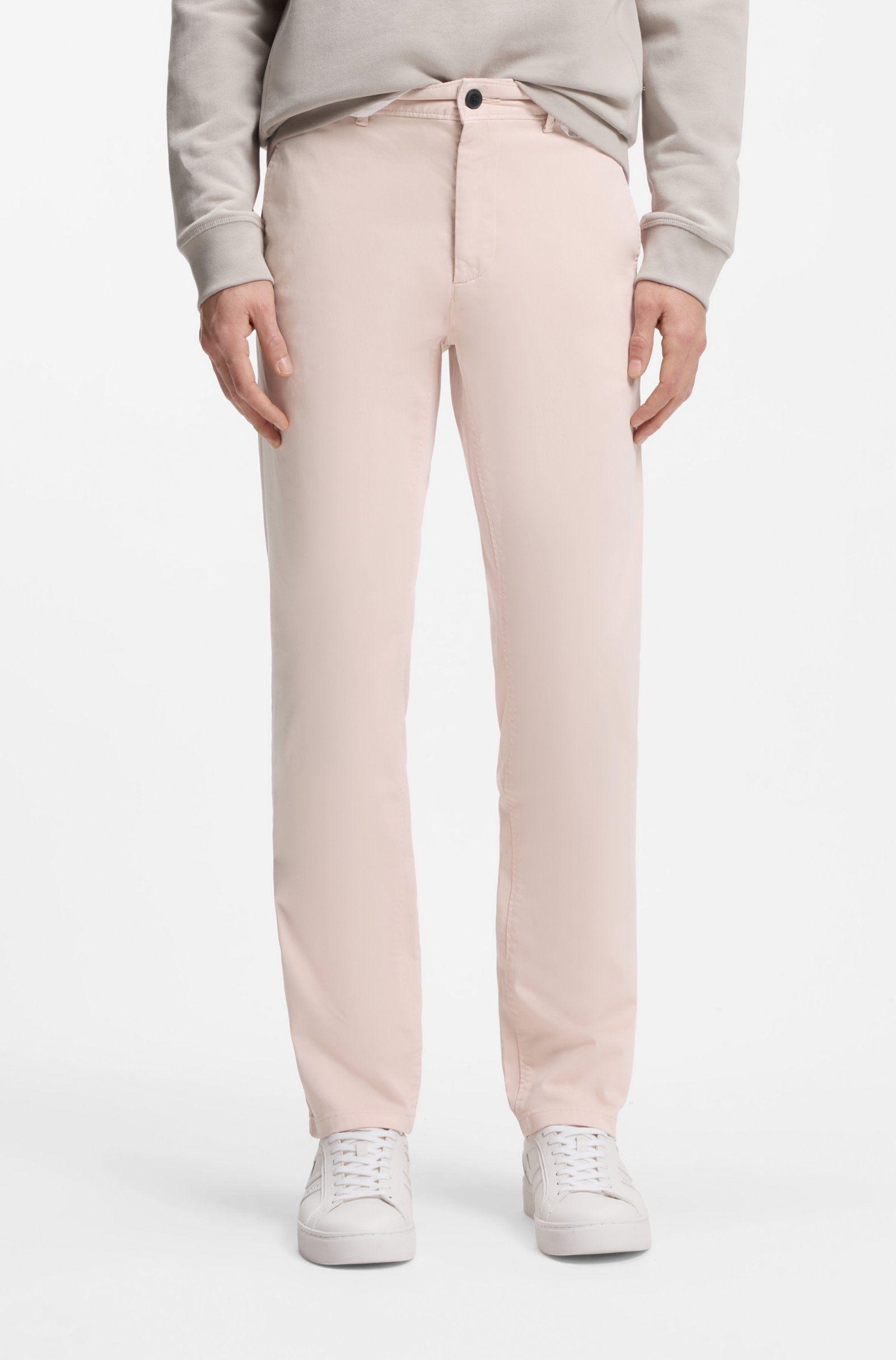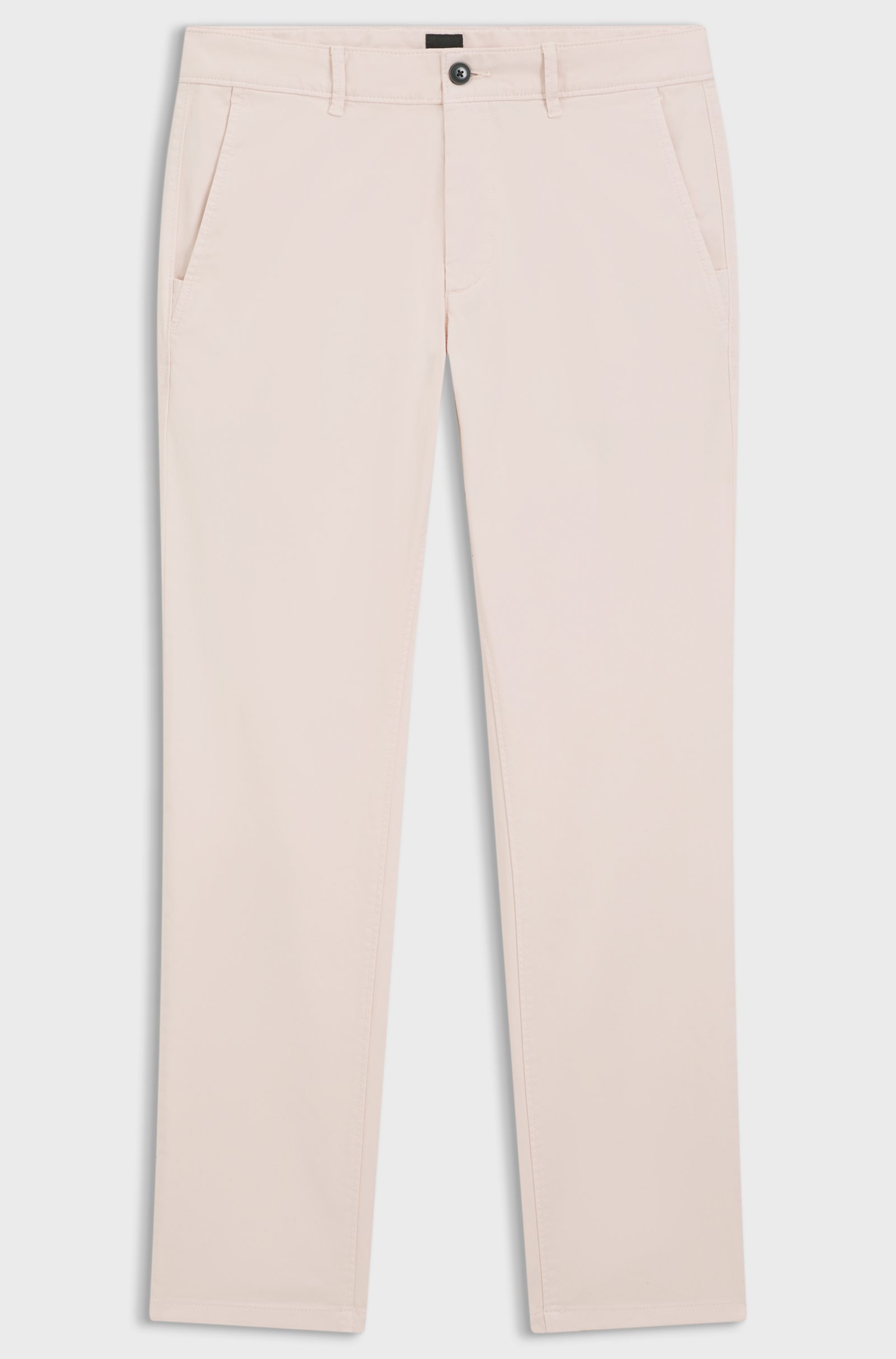 Chino in een modern slim-fit model van BOSS Menswear vervaardigd van zacht, oververfd satijn van stretchkatoen voor comfort. Logodetail op de achterkant.