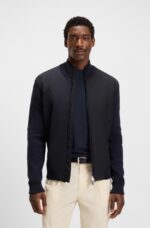 Deze jas van BOSS Menswear, gedetailleerd met een ton-sur-ton Double B monogram, is een frisse manier om laagjes aan te trekken. Ontspannen regular-fit model. Gemengde materialen, waaronder zachte katoen. Dit product bevat ten minste 60% duurzamere grondstoffen.