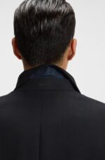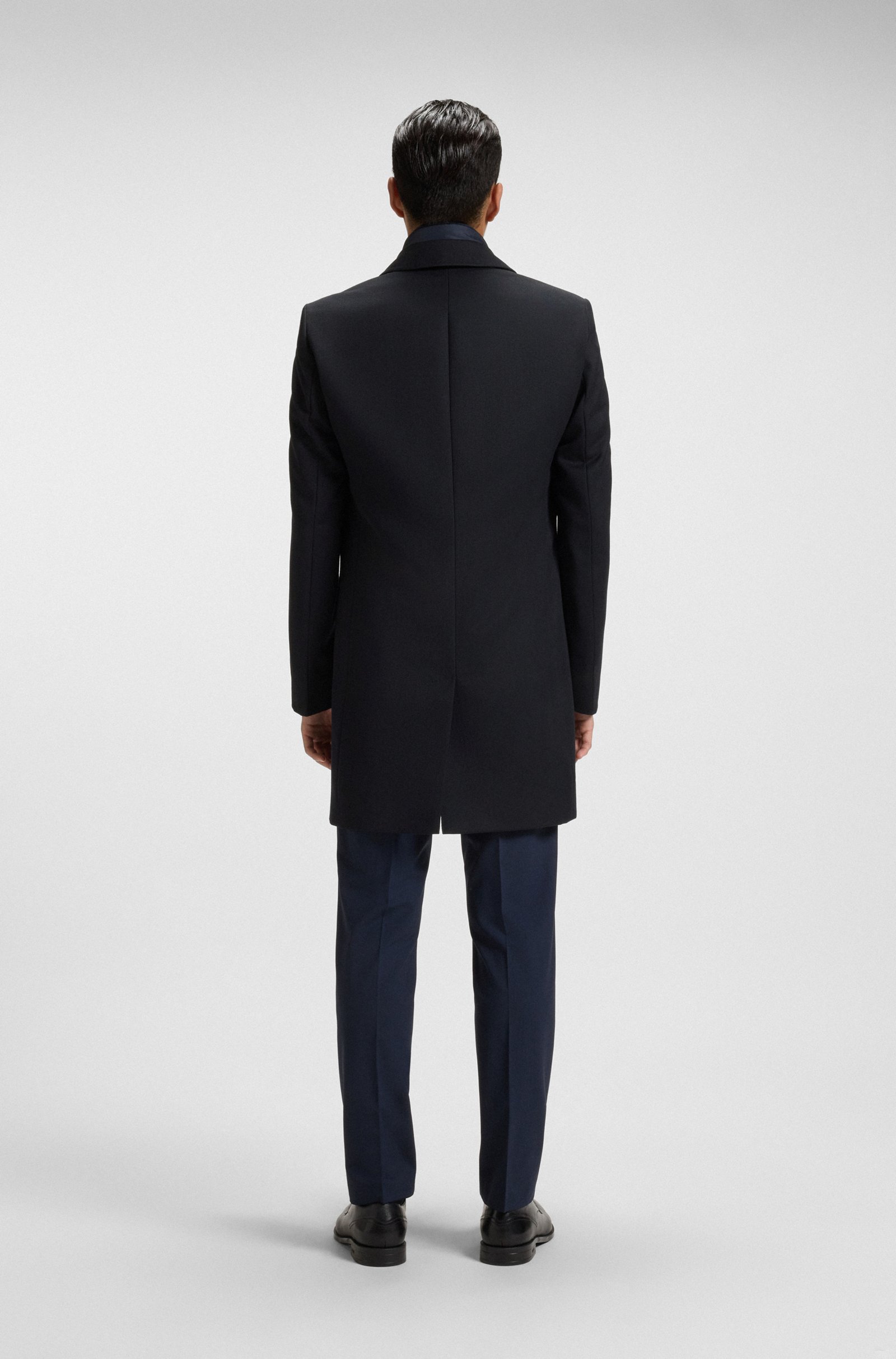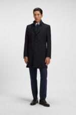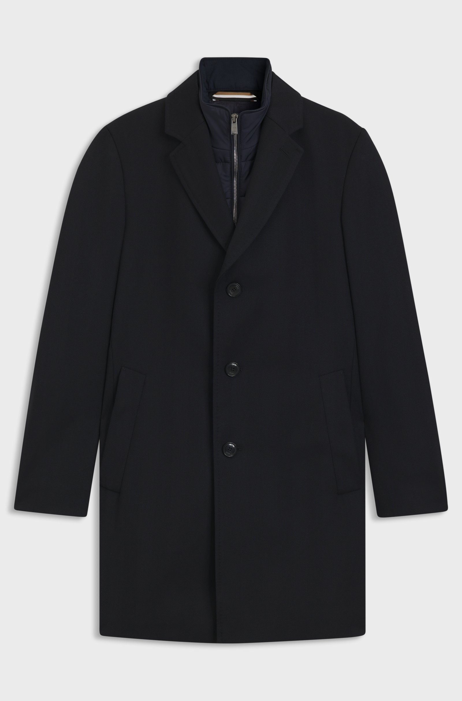 Deze mantel van BOSS Menswear is vakkundig vervaardigd van een waterafstotende wolmix met een visgraatpatroon en is een essential voor het tussenseizoen. Slim-fit model. Uitneembare binnenlaag met rits.