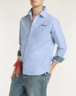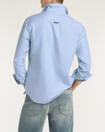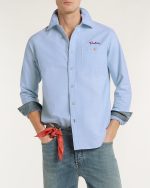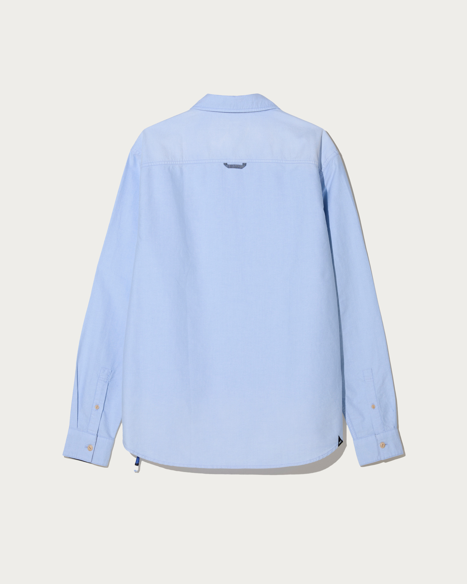 Het SHIRT OX is een regular-fit shirt van lichtblauwe Oxford-katoen. Voorzien van fisheye-knopen, borstzak en geborduurd logo.