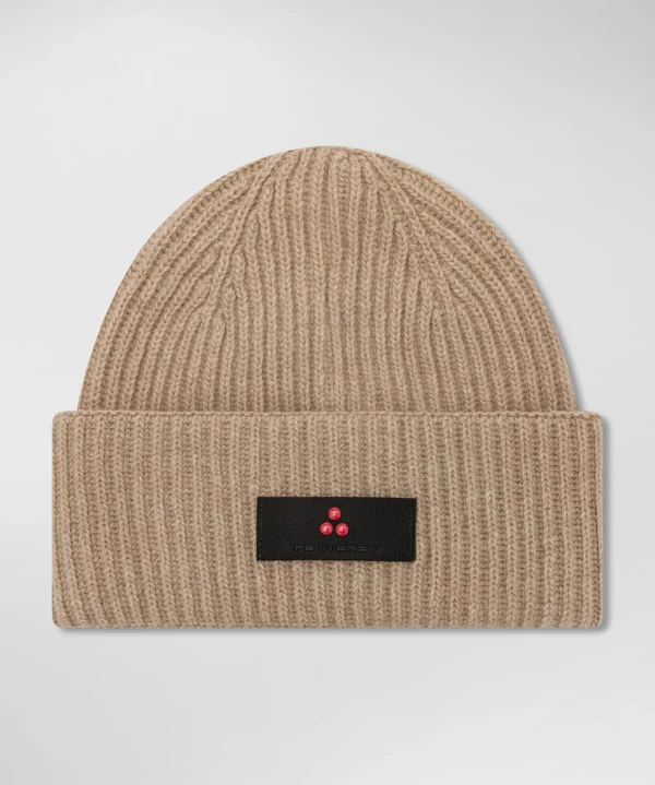 Een warme, effen kasjmiermix muts met ribbels en omslag. Eén maat. Het iconische Peuterey trilogie-logo op de voorkant zorgt voor een onderscheidend detail. Een onmisbaar accessoire voor koudere dagen, perfect voor dagelijks gebruik of als cadeau.
