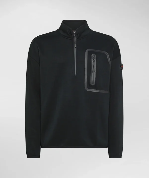 Sweatshirt van scuba, een technische stof die zich kenmerkt door een compact en elastisch gevoel, ideaal voor dagelijks comfort. Het praktische en eigentijdse ontwerp wordt gekenmerkt door een opstaande kraag, een halve ritssluiting en een opgestikte borstzak met ritssluiting en rubberen biezen. Geribde details aan de onderkant en manchetten zorgen voor een comfortabele en goed gedefinieerde pasvorm, ideaal voor dagelijkse bewegingen. Het logo van Peuterey, bevestigd met twee knopen op de linkermouw, geeft het kledingstuk een subtiele uitstraling. Een sportief en modern kledingstuk om toe te voegen aan je garderobe, voor een casual, comfortabele look.