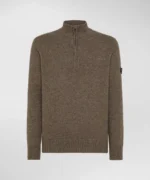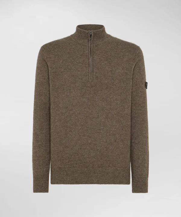 Fijne trui van yakwolmix met halve rits, met een kasjmierachtige zachte, warme en volle textuur. Het essentiële ontwerp wordt verrijkt door de opstaande kraag met rits en geribde details op de kraag, manchetten en onderkant, die zorgen voor een comfortabele en goed gedefinieerde pasvorm. Het Peuterey trilogy-logo – het iconische symbool van het merk – is met delicate knoopjes op de linkermouw aangebracht. De fijne wol voegt unieke warmte en comfort toe aan dit klassieke en verfijnde kledingstuk.