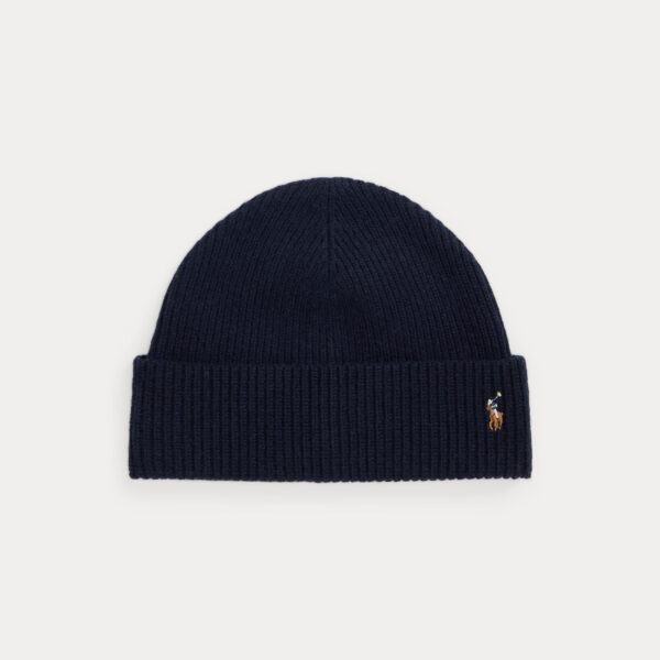 Deze ribgebreide muts is gemaakt van een extra fijne merinowolmix en afgewerkt met het veelkleurige, kenmerkende Pony-borduursel van Ralph Lauren.