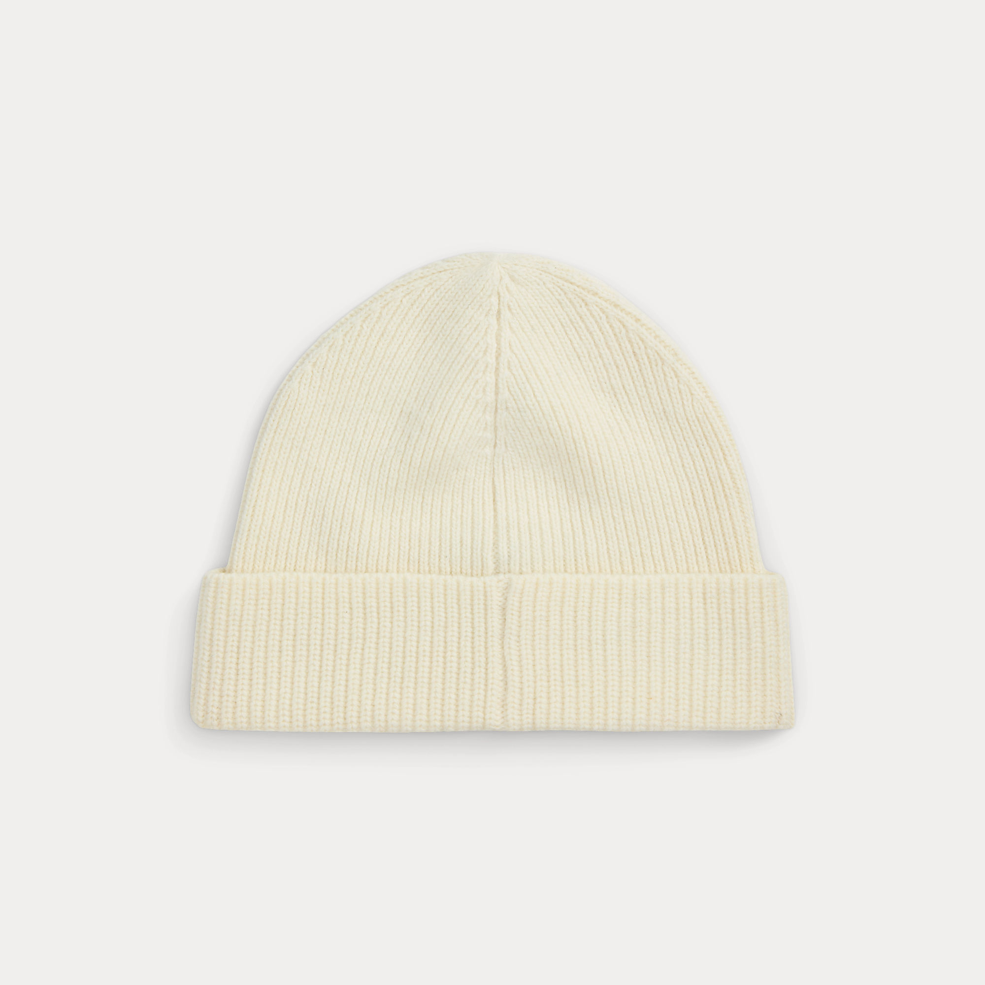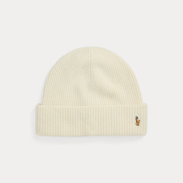 Deze ribgebreide muts is gemaakt van een extra fijne merinowolmix en afgewerkt met het veelkleurige, kenmerkende Pony-borduursel van Ralph Lauren.