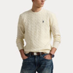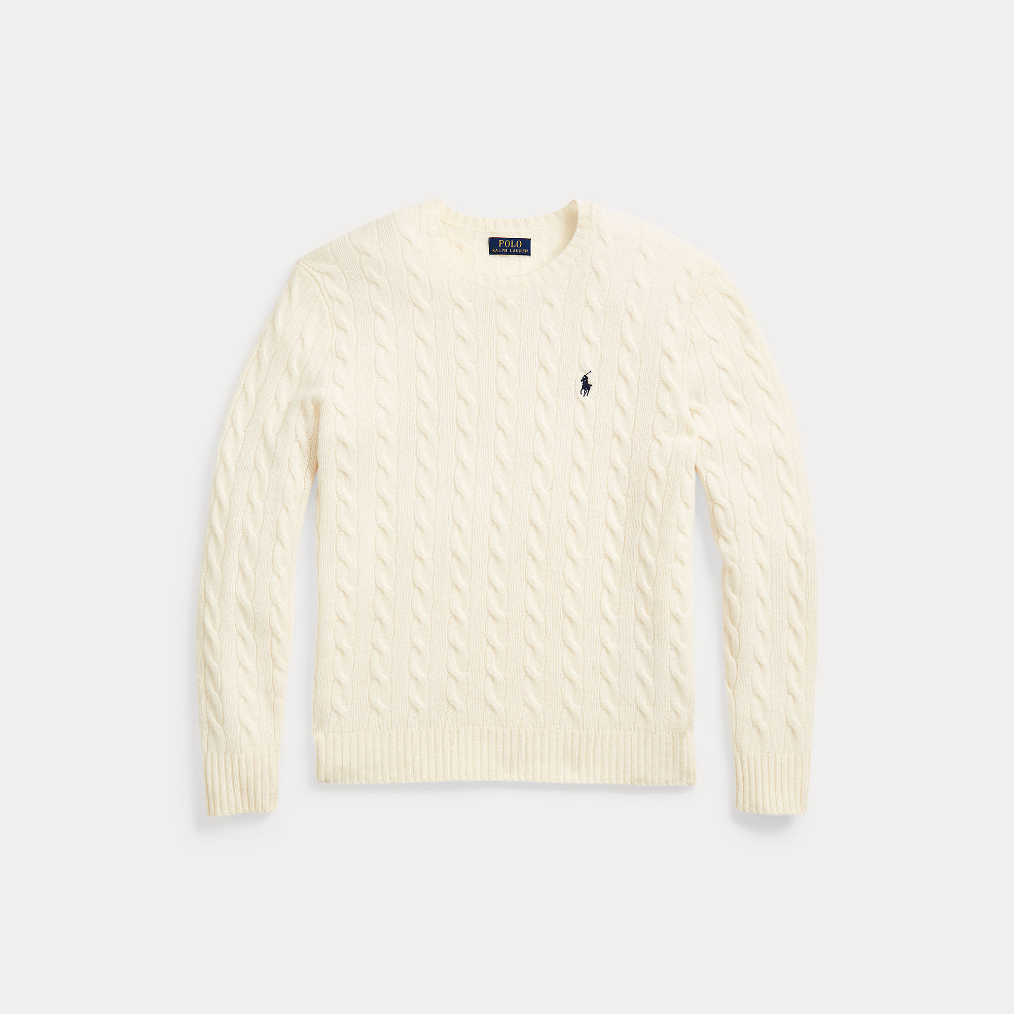 Iconische Polo Ralph Lauren kabeltrui, gemaakt van Italiaans wolgaren dat is gesponnen met kasjmier.