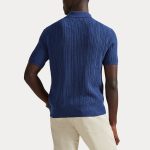 Deze kabel gebreide trui combineert een silhouet geïnspireerd op Ralph Lauren’s tijdloze poloshirt met veerlicht katoengaren dat met fijne borstels is gekamd, wat resulteert in een zachter en duurzamer kledingstuk.