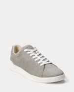 De Heritage Court II, geïnspireerd door schoenen die door voormalige tennisprofessionals werden gedragen, heeft een dual-compound EVA-tussenzool voor comfort en een rubberen cupzool-constructie met geïntegreerde hielondersteuning. Deze ton-sur-ton suède versie is afgewerkt met Ralph Lauren’s kenmerkende geborduurde Pony.