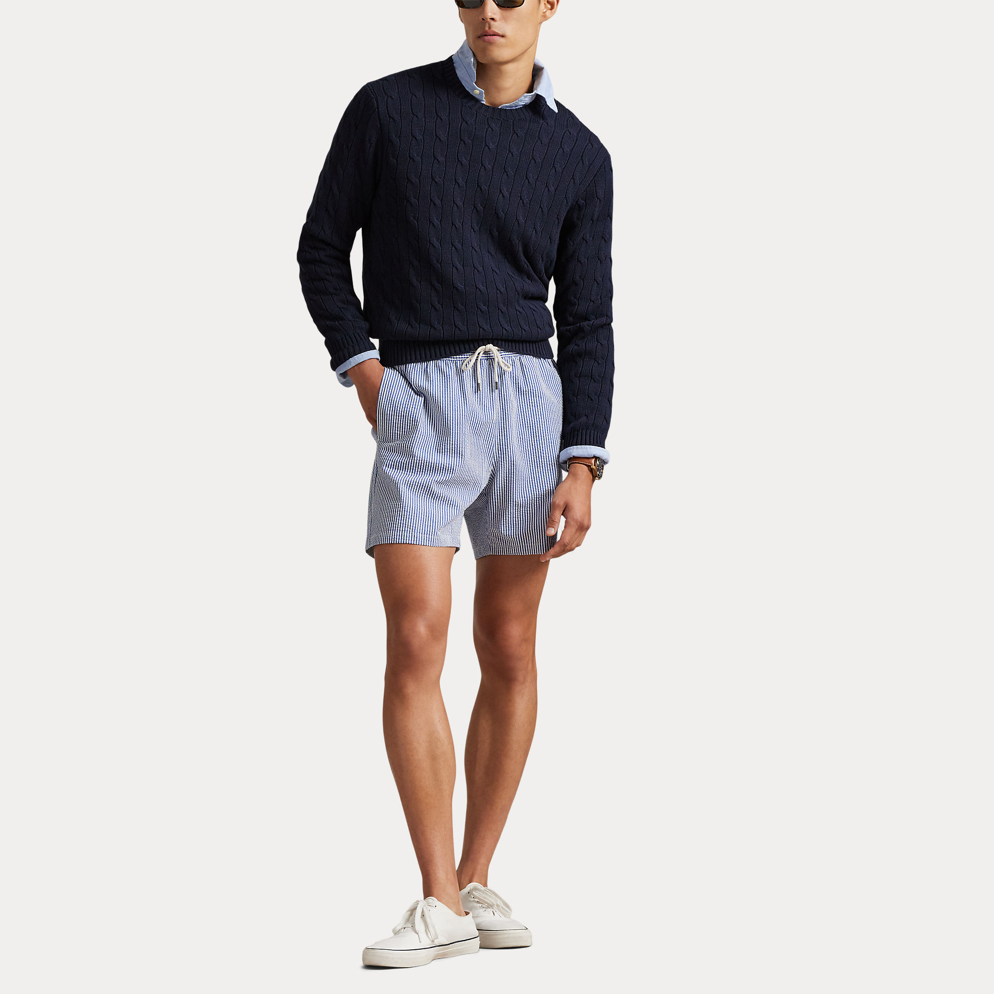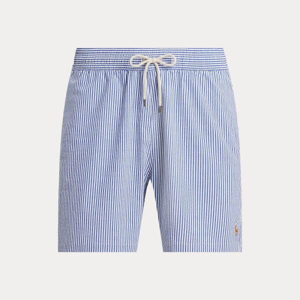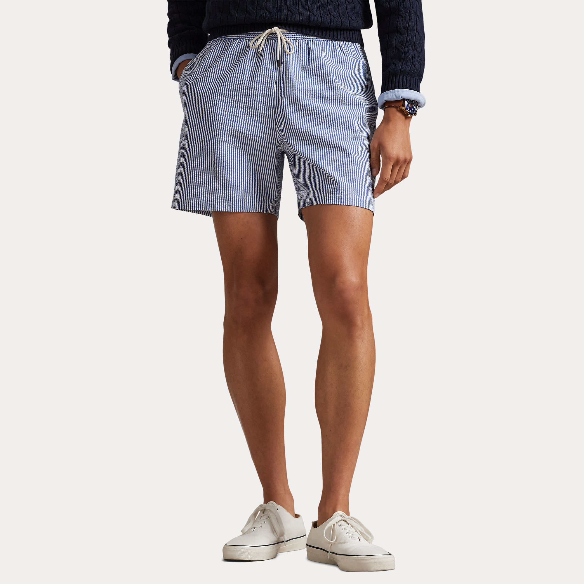 Polo Ralph Lauren seersucker zwembroek met bengal strepen geven deze met mesh gevoerde zwembroek een iconische Polo-look.