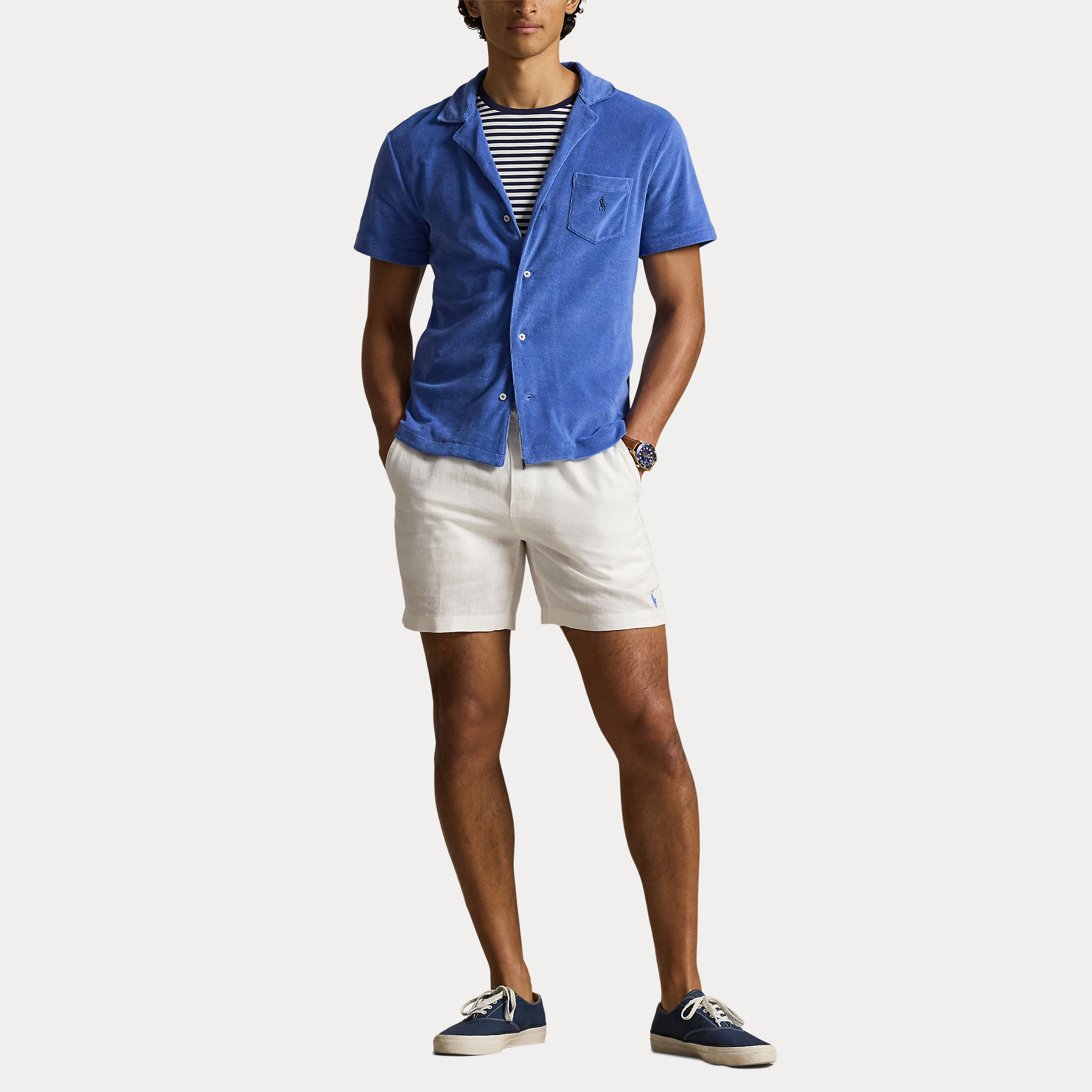 Met een badstof buitenkant en een zachte, gladde binnenkant valt dit katoenen overhemd met korte mouwen van Polo Ralph Lauren prachtig voor een ontspannen, gemakkelijk dragende pasvorm.