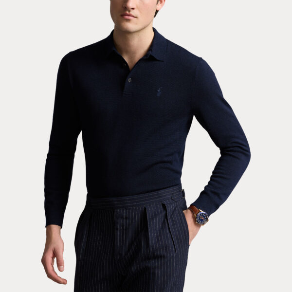 Deze trui met polokraag combineert een silhouet geïnspireerd op het iconische poloshirt van Ralph Lauren met fijngebreide kamgaren wol en het kenmerkende geborduurde ponylogo.
