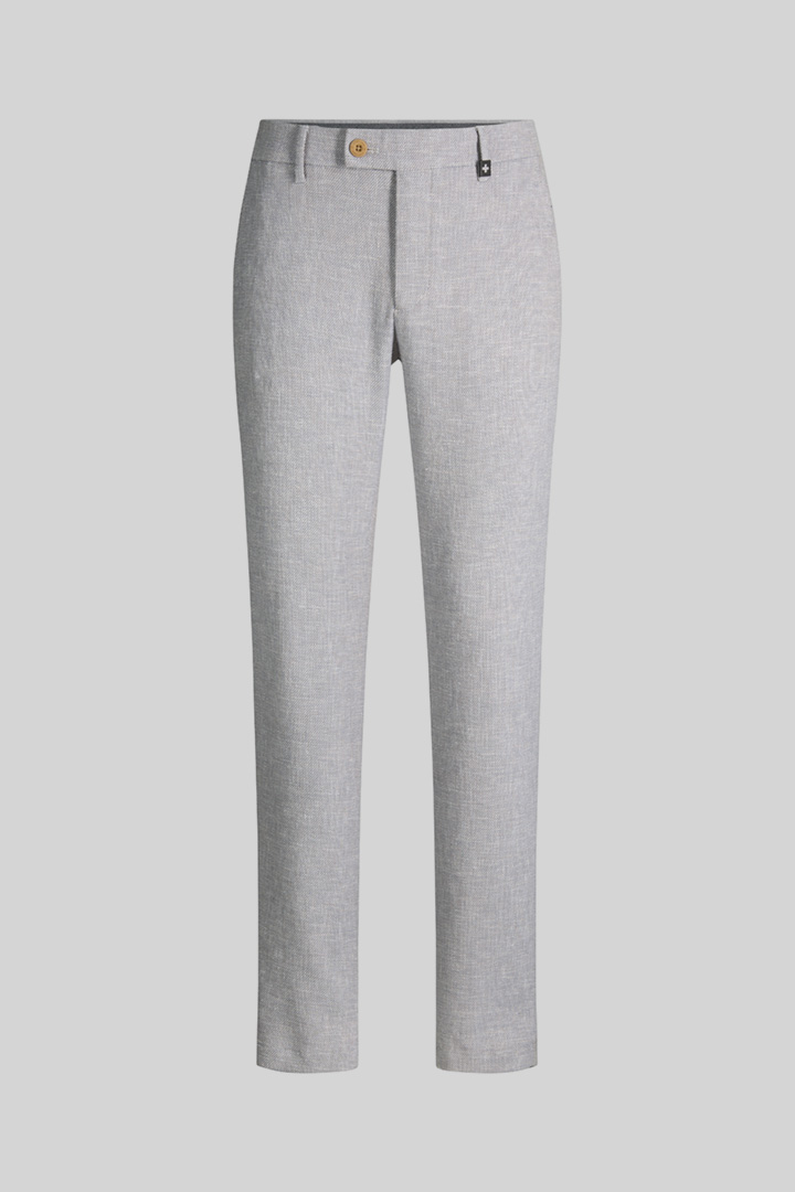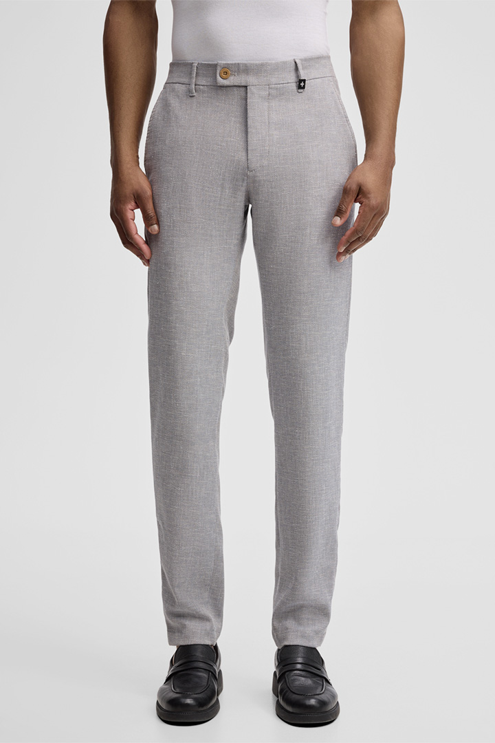 De Strellson chino Code krijgt de stijlvolle look in een gestructureerd ontwerp van een mix van katoen en linnen. Een verplaatst bandje aan de band, klassieke ceintuurlusjes en omboorde achterzakken met knoop geven de essential een getailleerd accent. Deze stoffen pantalon is geschikt voor werk en vrije tijd en kan veelzijdig worden gecombineerd.