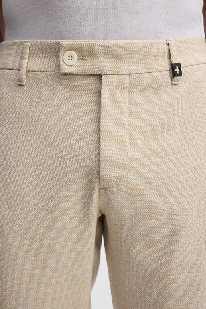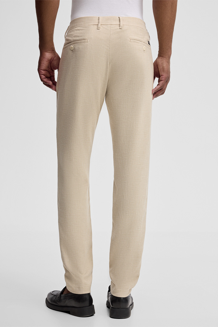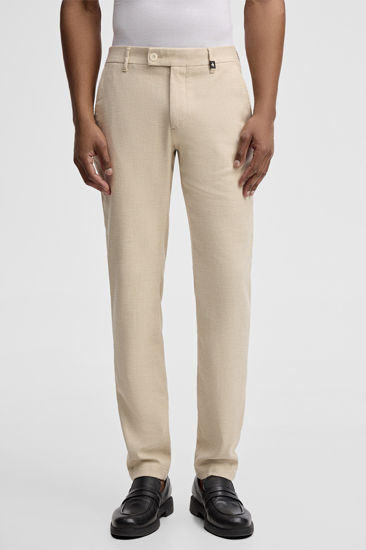 De Strellson chino Code krijgt de stijlvolle look in een gestructureerd ontwerp van een mix van katoen en linnen. Een verplaatst bandje aan de band, klassieke ceintuurlusjes en omboorde achterzakken met knoop geven de essential een getailleerd accent. Deze stoffen pantalon is geschikt voor werk en vrije tijd en kan veelzijdig worden gecombineerd.