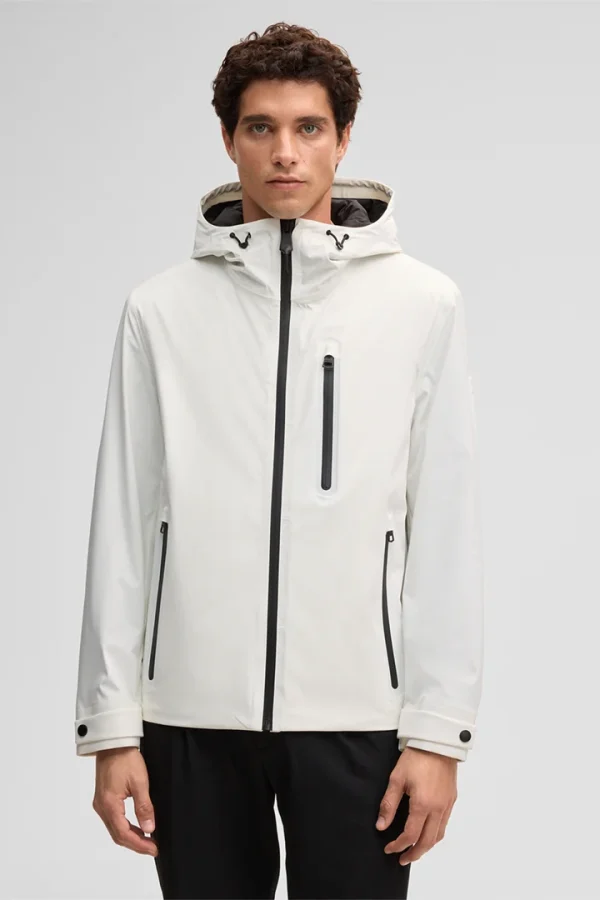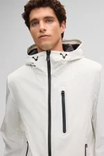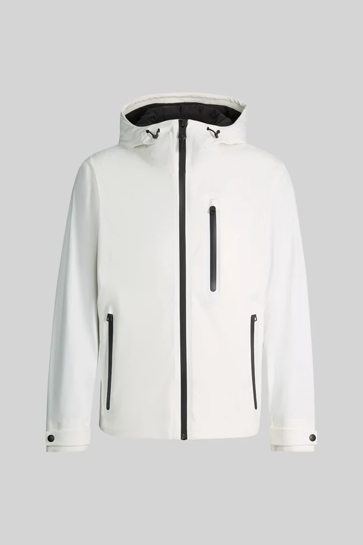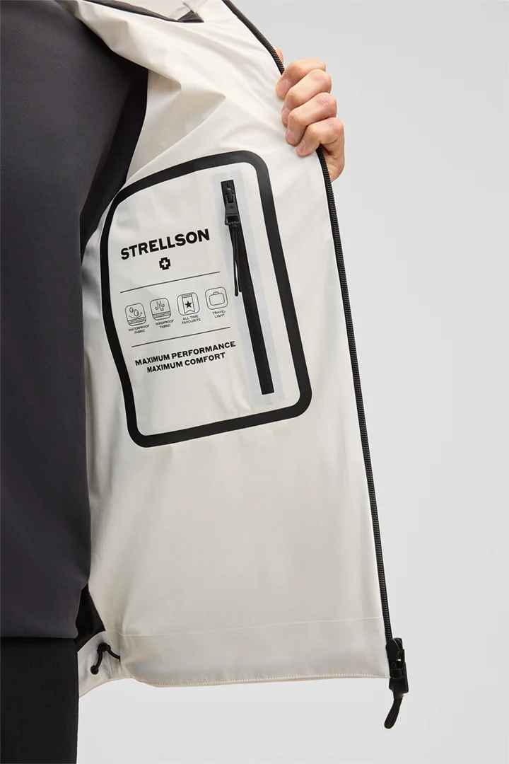 Strellson Windbreaker Flex Cross Hoody 2.0 met vaste capuchon, hoge kraag en een gewatteerde opstaande kraag aan de binnenkant. Getapete ritszakken en de sluiting zorgen voor winddicht en waterafstotend comfort, aangevuld met riemdetails aan de mouwuiteinden.