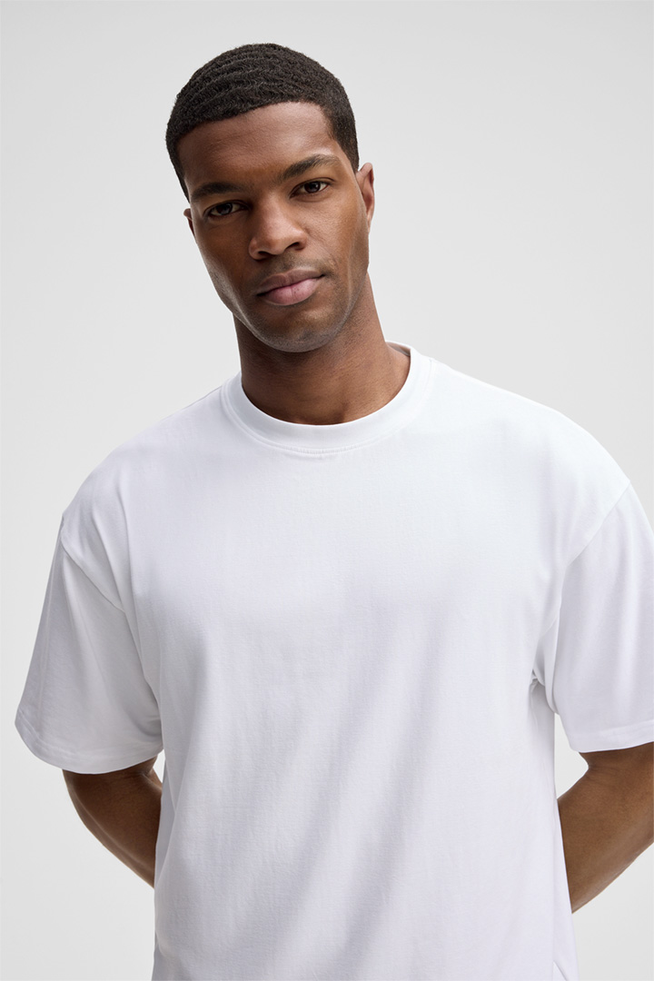 T-shirt Geza van Strellson met oversized schouders, ronde hals en dubbel gestikte uiteinden. Van Flex Cross-materiaal.