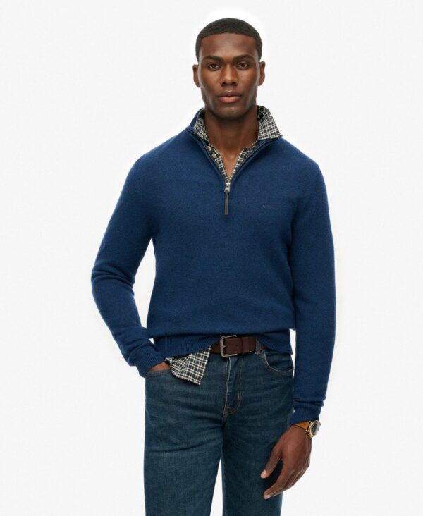 Slim fit – Halve ritssluiting met geribde boorden. Geborduurde tekst op de borst. De Wool Blend Half Zip Jumper biedt de perfecte balans tussen comfort en stijl. De trui is afgewerkt met een trendy halve ritssluiting en een luxueuze wolmix.