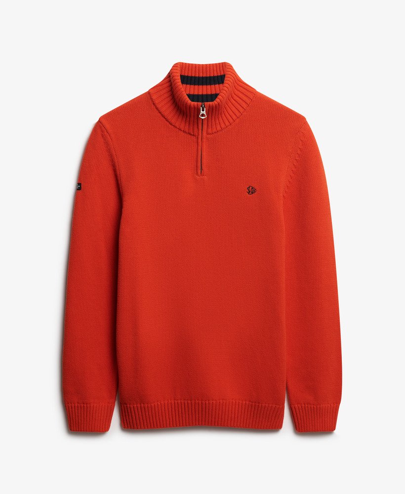 Slim fit – Halve ritssluiting. Geribde manchetten en zoom. Geborduurd Superdry-logo. Geïnspireerd door vintage breiwerk geeft deze katoenen trui met halve ritssluiting een luxueuze uitstraling aan je authentieke dagelijkse garderobe.