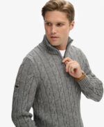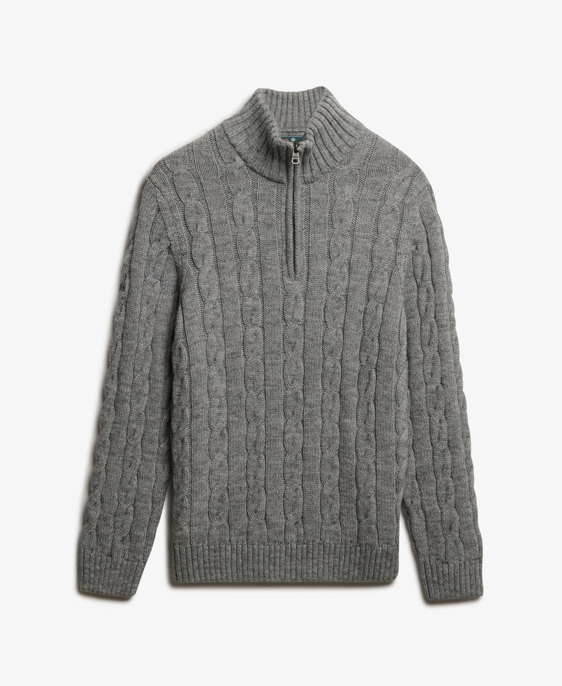 Relaxed fit kabeltrui met halve ritssluiting. Geribde zoom, manchetten.