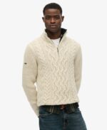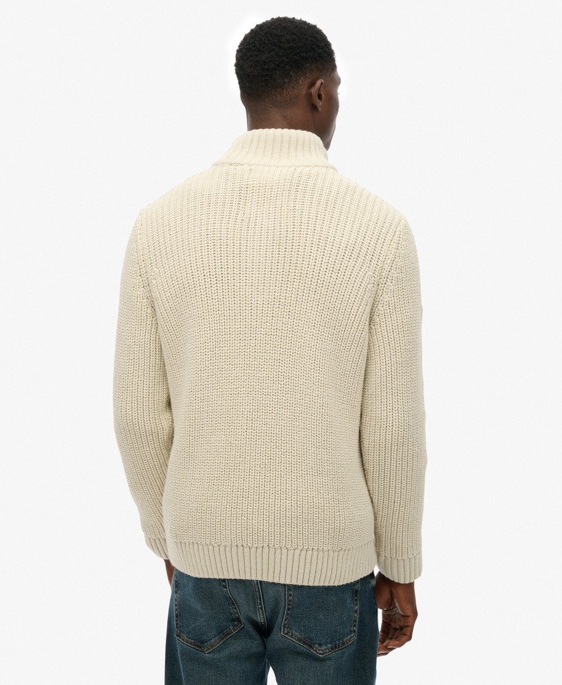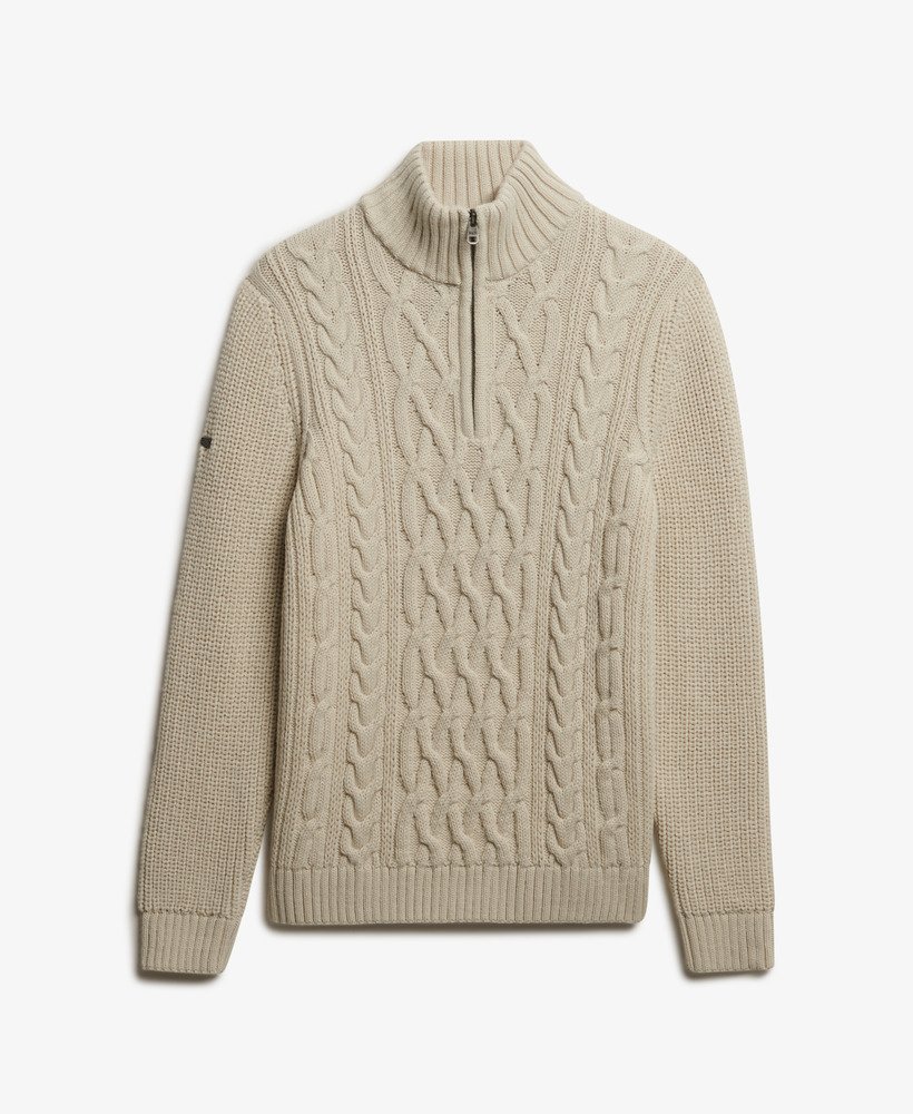 Relaxed fit kabeltrui met halve ritssluiting. Geribde zoom, manchetten.