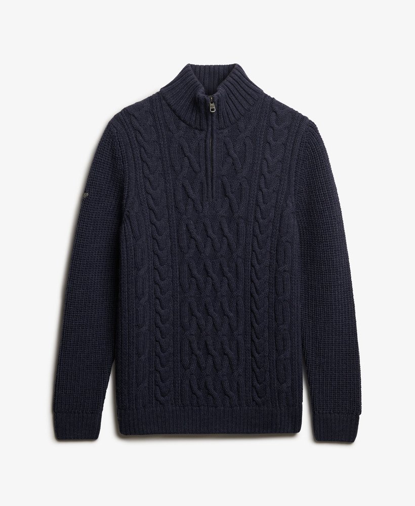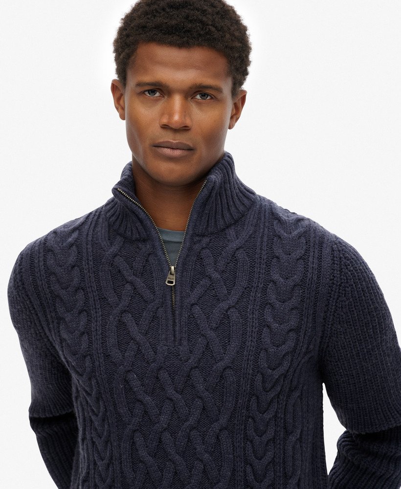 Relaxed fit kabeltrui met halve ritssluiting. Geribde zoom, manchetten.