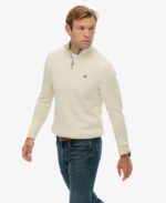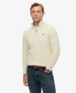 Slim fit – Halve ritssluiting. Geribde manchetten en zoom. Geborduurd Superdry-logo. Geïnspireerd door vintage breiwerk geeft deze katoenen trui met halve ritssluiting een luxueuze uitstraling aan je authentieke dagelijkse garderobe.